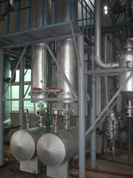將反應(yīng)好的粗甲酯經(jīng)預(yù)熱器打入蒸餾系統(tǒng),本蒸餾系統(tǒng)采用三次蒸餾工藝,大大提高了油品質(zhì)量和得率,成品油的提取完全在高真空密閉系統(tǒng)中進(jìn)行,本系統(tǒng)設(shè)備全部為不銹鋼304材質(zhì),所以在高溫下不會(huì)氧化,使產(chǎn)品的顏色得到最佳。